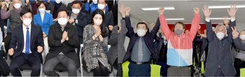 지지자와 당직자들은 들뜬 목소리로 \"한 끗 차이여도 이긴 것이제\", \"이겼어\"라며 자축했다. 한편에선 \"에라이\", \"끝까지 봐야 알겠네\" 등 실망감 섞인 탄식도 나왔다.