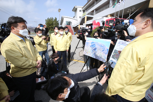 윤호중 비상대책위원장을 비롯한 민주당 비대위는 이날 오전 강릉 옥계면의 산불 피해 현장을 찾아 김한근 강릉시장과 심상택 동부지방산림청장 등으로부터 현장 상황을 보고받고 정부 지원 대책에 대한 건의사항을 청취했다.