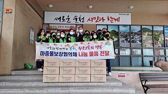 순천농협 파머스마켓은 순천시 왕조2동 행정복지센터에 어려운 이웃을 위한 후원 물품을 전달했다.