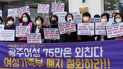 광주·전남 여성단체들이 윤석열 대통령 당선인의 여성가족부 폐지 공약 철회를 촉구했다.
