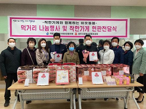 광주 동구 계림2동 지역사회보장협의체는 지난 15일 착한가게 5개소에 대한 현판 전달식을 갖고 관내 돌봄 이웃 60세대에 착한가게에서 판매하는 먹거리 세트(3만 원 상당)를 전달했다고 밝혔다.