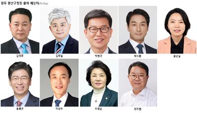23일 광주지역 정가에 따르면 민주당 광산구청장 경선 후보군은 김익주 광주시의원과 김학실 전 광주시의원, 박병규 전 광주시경제부시장, 박시종 전 청와대 선임행정관, 윤난실 전 청와대 비서관, 윤봉근 대통령 직속 국가균형발전위원회 국민소통위원, 이성수 전 광산구 부구청장, 이영순 전 광산구의회 의장, 최치현 전 청와대 행정관 등 9명이다.