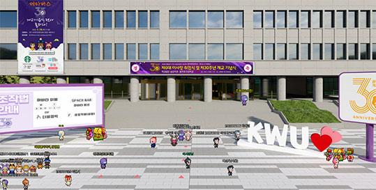 코로나19로 인해 대면 행사가 어려운 환경을 고려해 메타버스에 구현된 학교 본관 국제회의장 가상공간에서 학생들과 교직원이 함께 모여 기념식 행사를 진행했다.