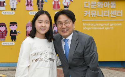 강 예비후보는 31일 오후 광산구 월곡동 고려인마을에서 우크라이나 동포 남루이자(56)씨의 손녀 남아니따(10)양을 만났다.
