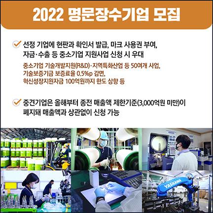 자세한 신청자격과 방법, 우대 사항 등은 중기부 누리집(www.mss.go.kr) 명문장수기업 모집 공고를 확인하면 된다.