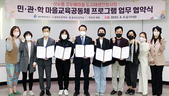 광주 동구는 지난 4일 학생들이 학교 울타리와 교과서를 넘어 마을 안에서 이뤄지는 마을교육공동체 구축을 위한 민·관·학 업무협약을 체결했다고 밝혔다.