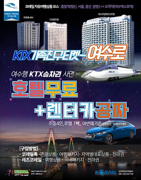 4인 일행이 서울과 수도권에서 여수로 오는 고속철도(KTX) 승차권을 구입하면 호텔과 렌터카를 무료로 이용할 수 있는 이벤트가 시행된다.