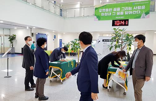 학생독립운동기념회관 전 직원은 세월호 추모 뱃지를 착용하고 회관 입구에 추모 현수막 문구를 게시한다. 또 11~20일 1층 현관 로비에서 시민들과 직원들이 협력해 ‘함께하는 기억의 나무’에 노란 리본 달기 등 추모의 장도 만들 예정이다.