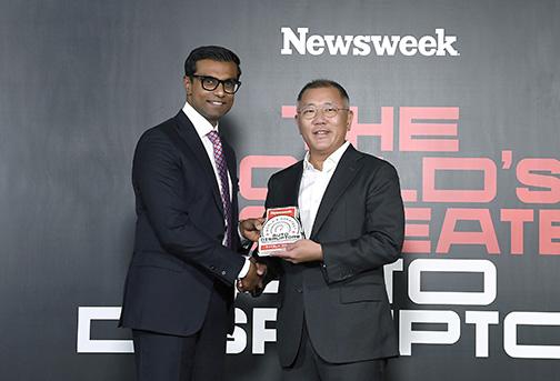 뉴스위크는 “정의선 회장은 자동차산업에서 현대차와 기아의 성장에 지대한 공헌을 했으며, 현대차그룹은 정의선 회장의 리더십과 미래를 향한 담대한 비전 아래 모빌리티의 가능성을 재정립하고, 인류에 ‘이동의 자유’를 제공하고 있다”고 선정 이유를 밝혔다.