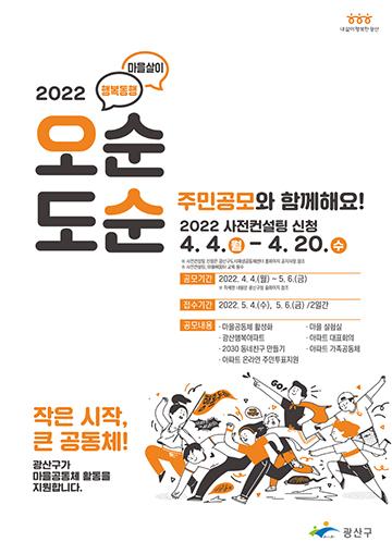 한편 ‘2022년 오순도순 마을살이 행복동행’ 주민공모 계획서는 5월4~6일 접수하며, 신청을 희망하는 주민 모임, 공동체 등은 마을배움터 교육을 이수한 뒤 사전컨설팅을 거쳐야 한다. 마을배움터 교육은 광산구, 광산구 도시재생공동체센터 유튜브 채널에서 수강할 수 있다.