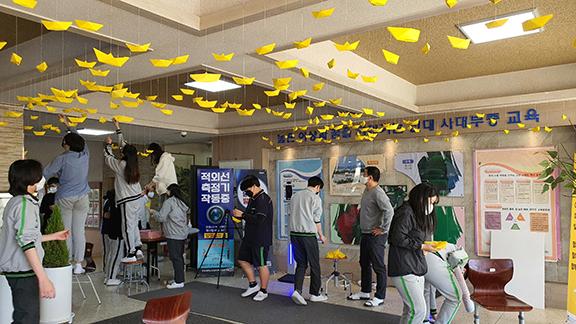 전남대학교부속사범대학부설중학교 세월호 참사 8주기 노란 종이배 접기 추모 행사. 2022.04.16.(사진=전남대학교부속사범대학부설중학교 제공)