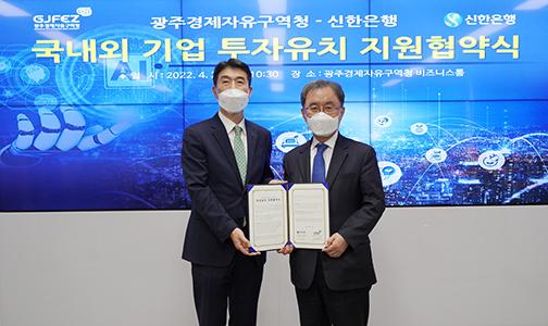 광주경제자유구역청(이하 광주경자청)이 신한은행과 국내외 기업유치 촉진과 지원을 위한 협력관계 구축을 내용으로 하는 투자유치 지원 협약(MOU)을 체결했다.