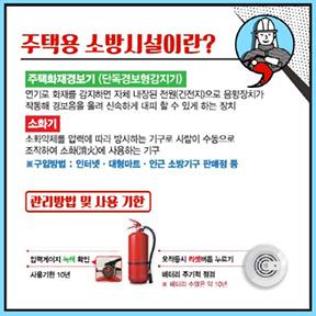 주택용 소방시설은 주택화재로 인한 인명피해 및 재산피해 방지 목적으로 단독주택(단독·다중·다가구)에 설치하는 소방시설로 단독경보형 감지기와 소화기가 있다.