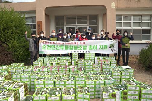산림조합중앙회와 순천시산림조합은 ‘2022년 산주·임업인 소득지원사업’을 통해 선도 특화임산물 재배단지를 운영중인 산두릅 협동조합에 물류비를 지원해 소득 증진을 도모했다.