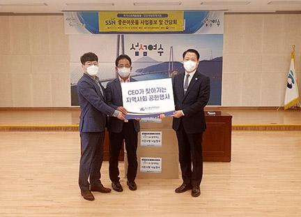 여수광양항만공사(YGPA)는 CEO가 찾아가는 지역 사회공헌활동의 일환으로 27일 여수시 화양면 이장단협의회를 방문, KF마스크 3000매와 온누리 상품권 100만원을 지역내 어려운 취약계층을 위해 기부했다.