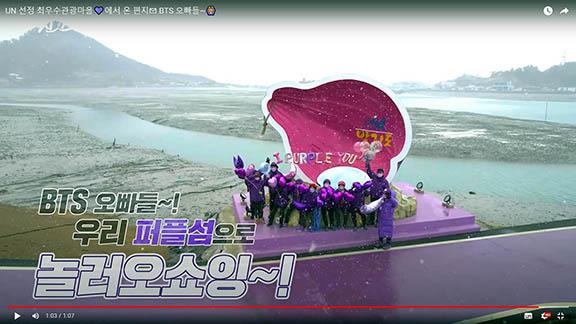 1분 가량의 영상은 보랏빛으로 섬을 가꿔 유엔세계관광기구 세계최우수관광마을로 선정된 퍼플섬을 소개하고, 이 곳에서 살고 있는 할머니들이 방탄소년단(BTS)을 초대하는 내용을 담고 있다.