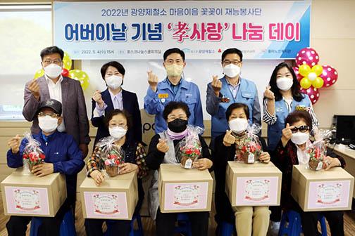 카네이션을 선물받은 한 어르신은 “직접 만들어주신 꽃이 너무 예쁘다. 잘 보이는데 두고 오래도록 간직하겠다”며 “이렇게 좋은 선물까지 준비해주신 광양제철소에게 너무 감사하다”고 말했다.