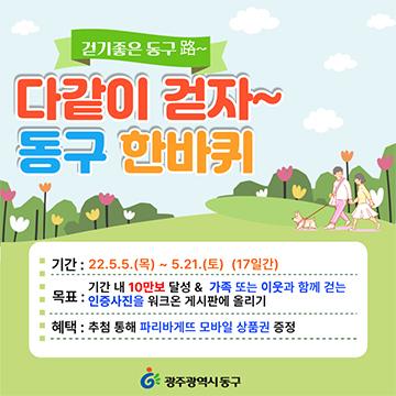 광주 동구는 5월 가정의 달을 맞아 ‘다 같이 걷자~ 동구 한 바퀴’ 걷기 이벤트를 진행한다고 밝혔다.