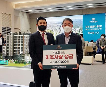 ㈜제이엠에셋은 순천 석현동 일원에 조성될 대형 하이앤드 아파트 ‘마크원 순천’ 시행 위탁사로, 앞으로도 어려운 이웃을 위한 나눔 활동에 적극적으로 앞장서겠다고 밝혔다.