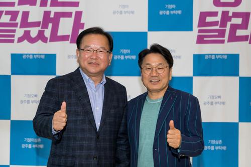 김부겸 전 국무총리가 총리직을 퇴임한 지 하룻만인 13일 더불어민주당 심장부인 광주를 깜짝 방문해 강기정 광주시장 후보와 회동했다. /강기정 캠프 제공