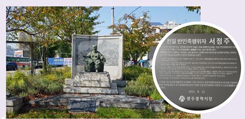 한국화 대가인 의재(毅齋) 허백련(1891~1976) 선생의 동상 앞에 친일파 단죄문이 설치돼 시각적으로 혼선을 빚는 등 논란이 일자 광주시가 단죄문 이설을 검토하고 나섰다.
