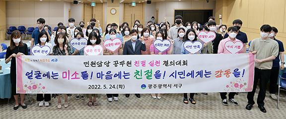 광주 서구가 24일 민원담당 공무원들을 대상으로 친절 역량 강화 교육과 함께 실천결의대회를 가졌다고 밝혔다.