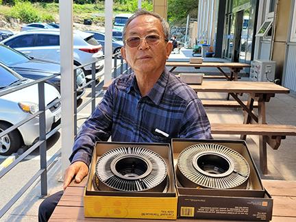 1980년 당시 옛 전남도청의 사진촬영기사로 근무했던 김영주(77)씨가 지난 4일 전남 완도의 자택 인근에서 자신이 소장하고 있던 옛 전남도청의 항공 사진 등이 담긴 슬라이드를 보여주고 있다. /5·18기념재단 제공