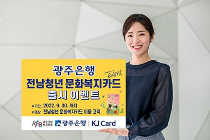 광주은행은 8일 전남청년 문화복지카드 출시를 기념해 오는 9월30일까지 푸짐한 경품을 제공하는 이벤트를 펼친다고 밝혔다.