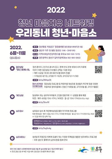 우리동네 청년-마음소는 코로나19 일상회복을 앞두고 이른바 ‘엔데믹 블루(일상회복 불안)’를 겪고 있거나 ‘니트(NEET, 일하지 않고 일할 의지가 없는 청년)’ 위기에 처한 청년들이 삶의 활력을 되찾을 수 있도록 소통의 장을 제공하는 프로그램이다.