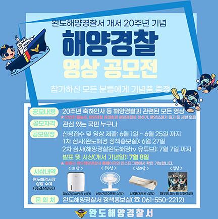완도해양경찰서가 개서 20주년을 기념하며 ‘국민참여 해양경찰 영상공모전’을 진행중이다.