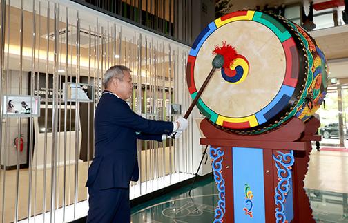 전남대학교가 개교 70주년, 창학 113주년을 맞아 옛 유물인 대형 북 \'농심고(農心鼓)\'를 기증받아 제막했다.