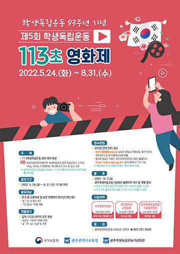 광주학생독립운동기념회관이 11·3 학생독립운동 제93주년을 맞아 학생독립운동에 대한 사회적 공감 형성 및 관심 확대를 위해 5월24일~8월31일 ‘학생독립운동 113초 영화제’를 개최한다.