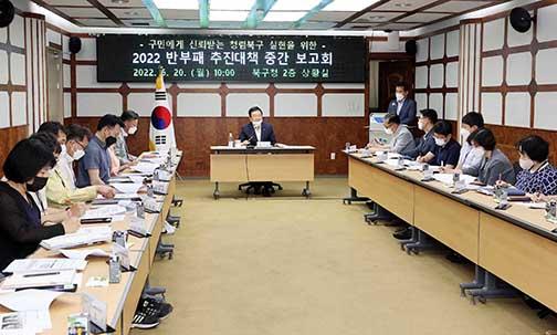 광주 북구는 구민에게 신뢰 받는 공직 문화 확산을 위해 20일 \'2022년 반부패 추진대책 중간 보고회\'를 열었다.