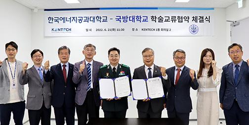 한국에너지공과대학교(KENTECH·켄텍)는 21일 국방대학교와 에너지 안보 교육프로그램 운영을 골자로 학술교류 업무협약을 체결했다. (사진=켄텍 제공) 2022.06.21.