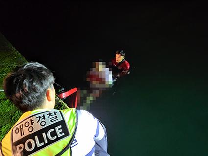 A씨는 구조 당시 육상에 연결된 줄을 잡고 버티고 있었으며, 어지럼증 외 다른 건강 상태는 이상이 없이 119구급대에 인계됐다.