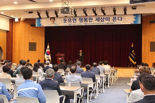광양상공회의소가 코미디언 엄영수를 초청해 ‘웃으면 행복한 세상이 온다’라는 주제로 지난 23일 오후 월드마린센터 국제회의장에서 제5회 광양리더스아카데미 ‘이음’ 특강을 개최했다.