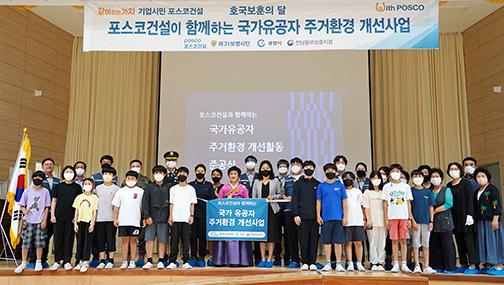 포스코건설 건축사업본부 서부사업단 직원들은 6월 호국보훈의 달을 맞아 ‘포스코와 함께하는 국가유공자 주거환경 개선사업’ 준공식을 지난 23일 골약초등학교 대강당에서 관계자, 마을주민 등 30여 명이 참석한 가운데 개최했다.