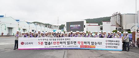 LG화학 여수공장은 임직원과 협력사가 \'안전\'을 최우선으로 고려하는 \'한마음 5분 멈춤 안전 문화 캠페인\'을 전개했다고 2일 밝혔다.