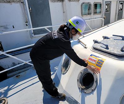 또 해당 선박 선주의 동의를 얻어 사고발생 시 누구나 쉽게 알아보고 신속하게 연락을 취할 수 있도록 자체 제작한 스티커를 부착한다.
