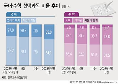지난달 9일 실시된 2023학년도 대학수학능력시험(수능) 6월 모의평가는 1등급을 구분하는 표준점수가 국어는 높아지고 수학은 하락했다. 국어와 수학 만점자가 획득한 표준점수는 지난해 수능과 같아 어려웠던 시험으로 평가된다.