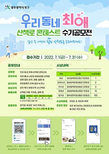 광주시 북구는 오는 31일까지 ‘우리 동네 최애(最愛) 산책로 콘테스트’ 수기 공모전을 개최한다고 7일 밝혔다.