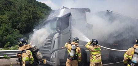 순천소방서는 지난 9일 오후 1시 40분께 순천시 서면 비월리에서 고속도로 오르막을 운행중이던 화물차량에서 화재가 발생했다는 신고를 받고, 인원 24명, 장비 8대를 투입, 출동해 완전진압 했다.