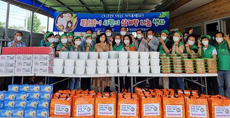 나눔 행사를 위해 \'닭사랑 농장\'에서 생닭을 후원했으며, 무더위 속에서도 부녀회원들이 직접 음식을 준비해 나눔의 의미를 더했다.