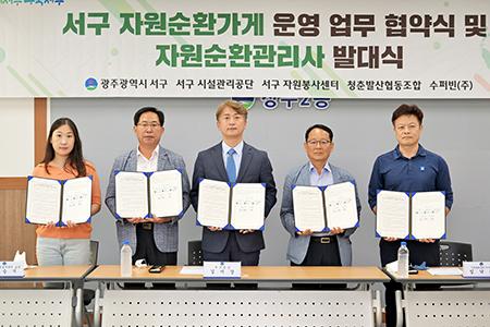 한편, 서구는 자원순환가게 개소에 앞서 서구시설관리공단, 서구자원봉사센터, 수퍼빈(주), 청춘발산협동조합과 재활용품의 수거 및 보상, 처리에 관한 업무 협약을 체결했다.