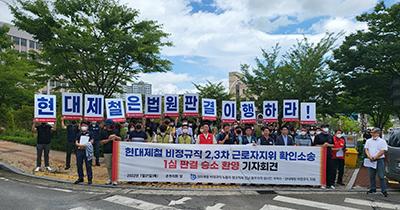 그러면서 “현대제철은 판결대로 즉각 정규직 전환을 이행하라”면서 “나아가 비정규직 없는 세상, 땀의 가치가 정당하게 평가받고 대접받는 노동존중 세상을 앞장서서 열어나갈 것\"이라고 덧붙였다.