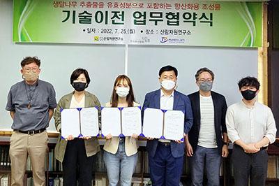 전남산림자원연구소의 생달나무 기술이전 협약식. (사진=산림자원연구소 제공)