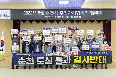 순천시 주민자치협의회는 지난 9일 월례회의에서 순천시 도심을 관통하는 경전선 전철화 사업을 강력 규탄했다.
