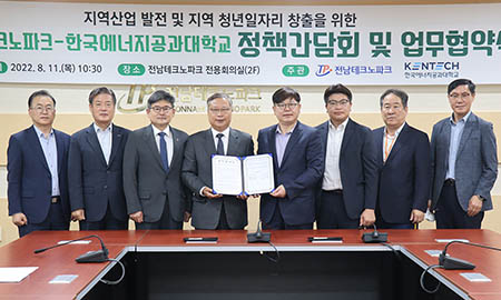 한국에너지공과대학교(KENTECH)와 (재)전남테크노파크가 11일 글로벌 산업 패러다임 변화에 대응하고 지역발전을 위한 협력체계 강화를 위한 업무협약을 체결했다.