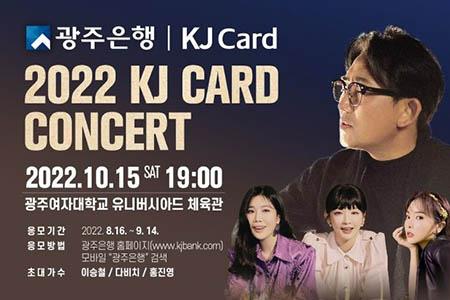광주은행은 ‘2022 KJ CARD 콘서트’를 오는 10월 15일 오후 7시에 광주여대 유니버시아드체육관에서 개최한다고 18일 밝혔다.