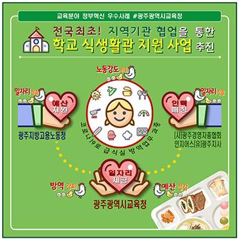 광주시교육청이 추진한 \'지역기관 협업을 통한 학교급식실 업무 지원사업\'이 교육부 우수사례로 선정됐다.